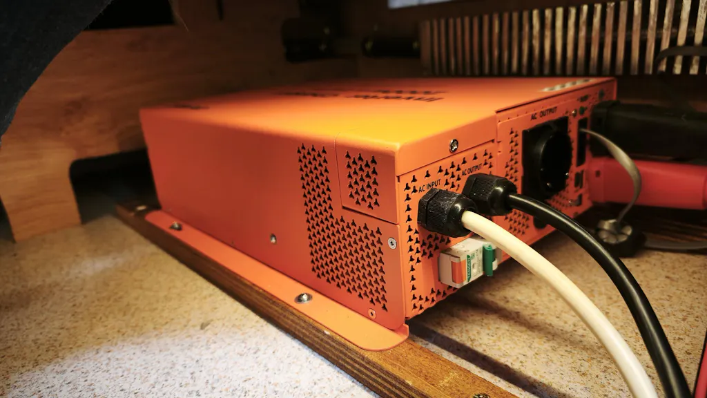 Wir raten davon ab, den AC-AUSGANG des Wechselrichters in den 230-V-Verteiler des Wohnmobils zu integrieren, da die Gefahr einer Beschädigung des Wechselrichters besteht. Für schwerwiegende Schäden, die auf eine falsche Verkabelung zurückzuführen sind, bieten wir keinen Kundendienst an.